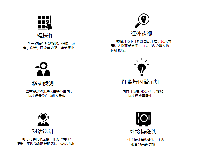 welcome海洋之神官网DSJ-200F 执法仪(法院/政府/城管)拍摄像素高达5000万,广角镜头137,拍摄画面精细而全面,大容量电池支持陆续在工作12小时不断电